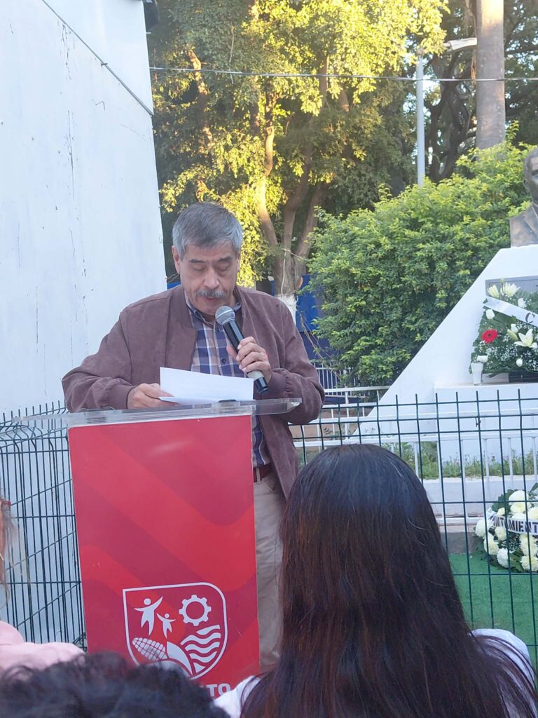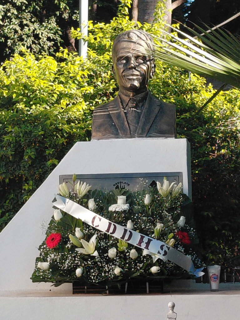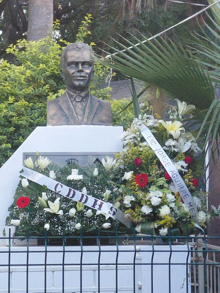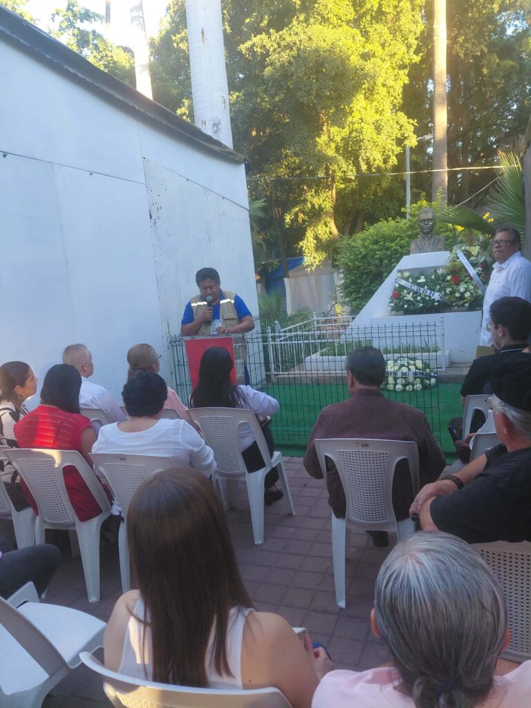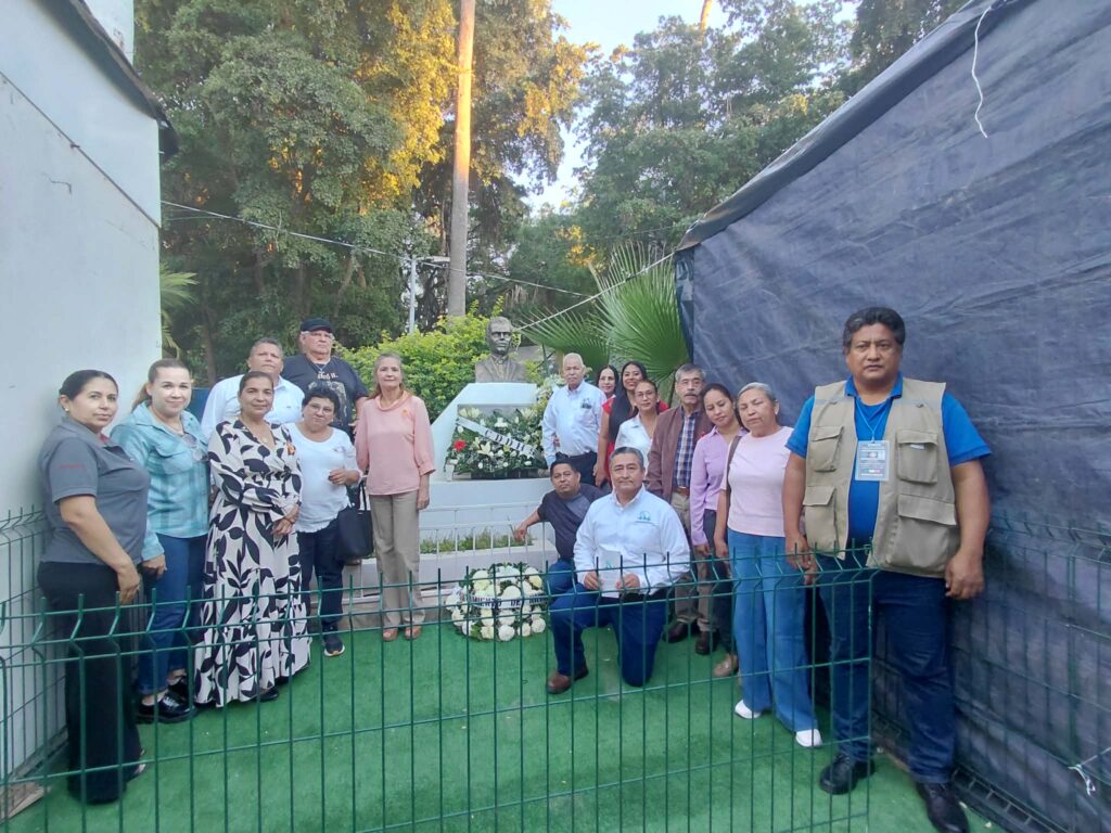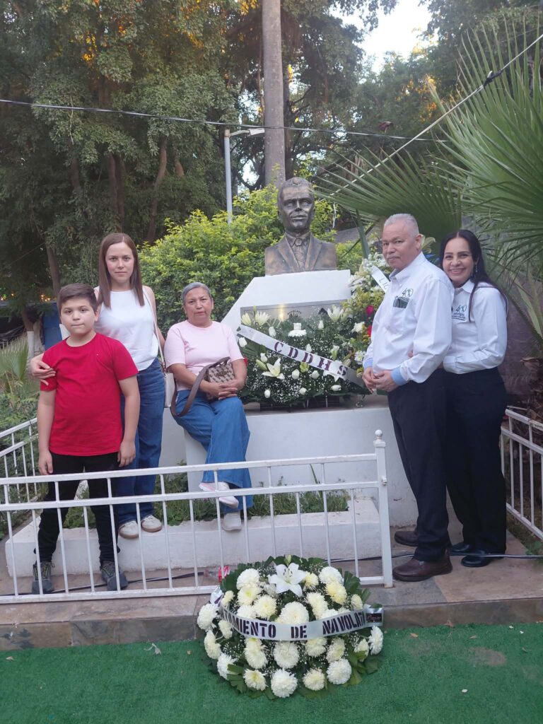 En el marco del Día Internacional de los Derechos Humanos 2025 y en un acto conmemorativo, frente al busto del Lic. Jorge Aguirre Meza realizan, familiares, autoridades, y amigos un homenaje y ofrenda floral al defensor de los Derechos Humanos en el municipio.